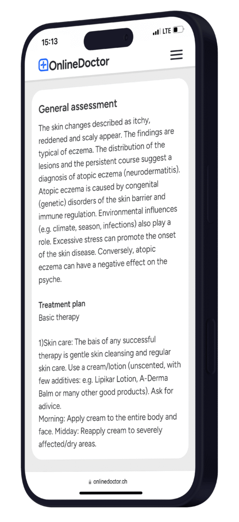 Within a short time, you will receive our specialist assessment and a concrete recommendation on what you can do about your skin problem.