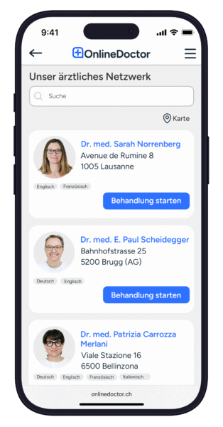 Bei OnlineDoctor können Sie zwischen 150 Hautärztinnen und Hautärzten in der Schweiz wählen. Klicken Sie einfach auf die Karten und finden Sie eine Fachärztin/einen Facharzt in Ihrer Nähe. So können Sie schnell und einfach Ihr Hautproblem durch eine lokale Praxis online abklären lassen.